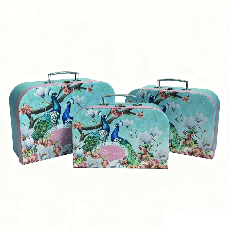 HF999798 3 Pack Paperboard Suitcases Storage Box Decorative Boxes Storage Gift Boxes With Lids for Photo Storage Home Decoration, Wedding, Birthday, Anniversary